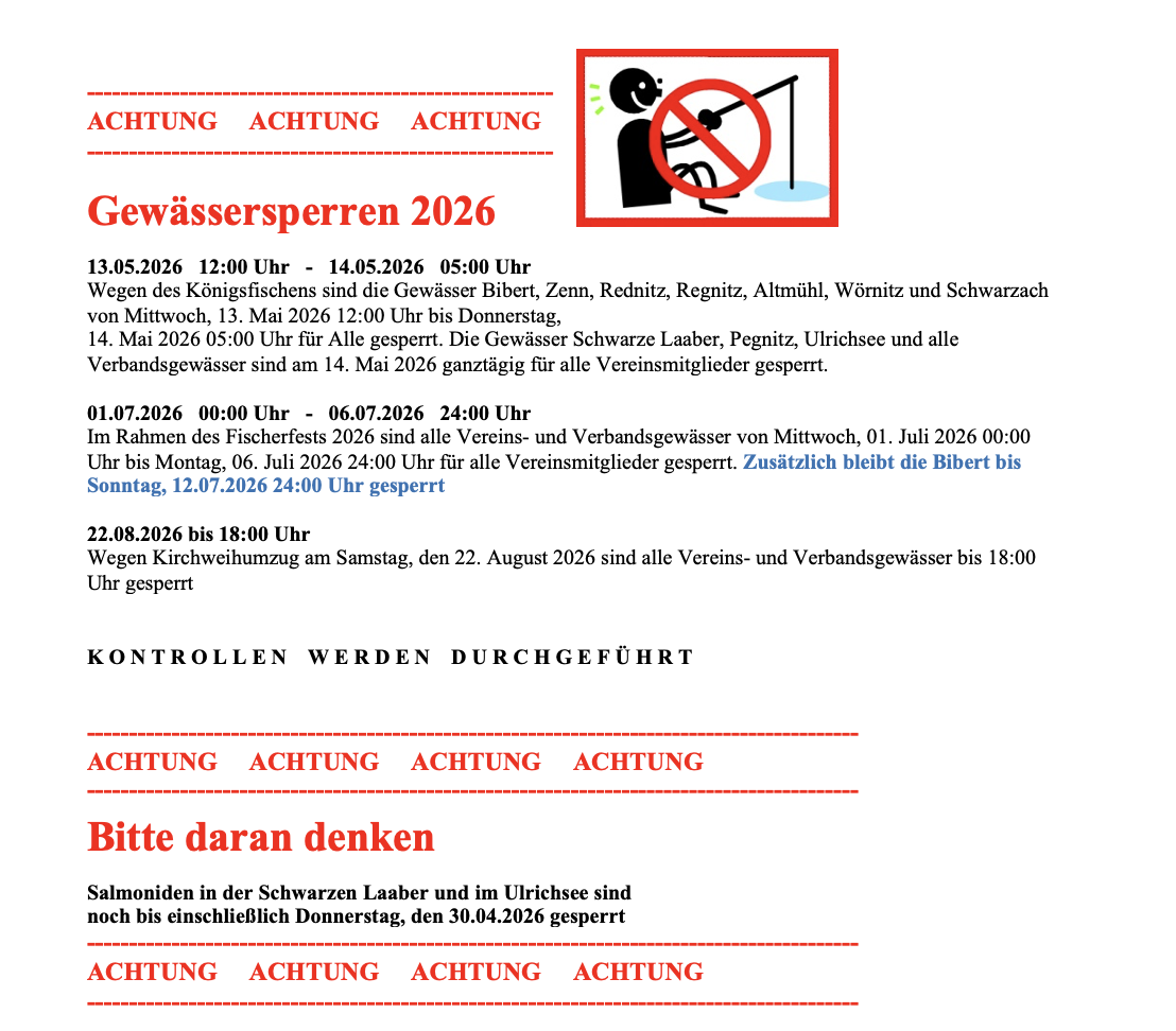 Seit der Gründung des Vereins waren die Verantwortlichen stets bestrebt Eigentumsgewässer zu schaffen, um den Verein für die Zukunft so zu gestalten, dass jedes Mitglied seine spezielle Art der Fischerei ausüben kann. Nachdem man sich in unserem Verein nicht für die Ausgabe des Einzelerlaubnisscheins, sondern für den Sammelerlaubnisschein entschieden hatte, wurde die Befischung in der Schwarzen Laaber nur mit Fliege und Schonhaken ohne weitere Hilfsmittel erlaubt. Diese Entscheidung ist aber nicht bei allen Mitgliedern beliebt und wird daher zwangsläufig kontrovers diskutiert. Ohne diese Maßnahme jedoch wäre dieser kurze Flussabschnitt bei einem Befischungsdruck, der durch die Ausgabe des Sammelerlaubnisscheins entsteht, in zwei Wochen leer gefischt. Eine schonende Befischung mit geringer Entnahme von Beutefischen ist die Voraussetzung für den Erhalt des ökologischen Gleichgewichts. Dadurch kann eine relative Dichte eines artenreichen Fischbestandes entstehen, der auch das Heranwachsen kapitaler Fische ermöglicht.